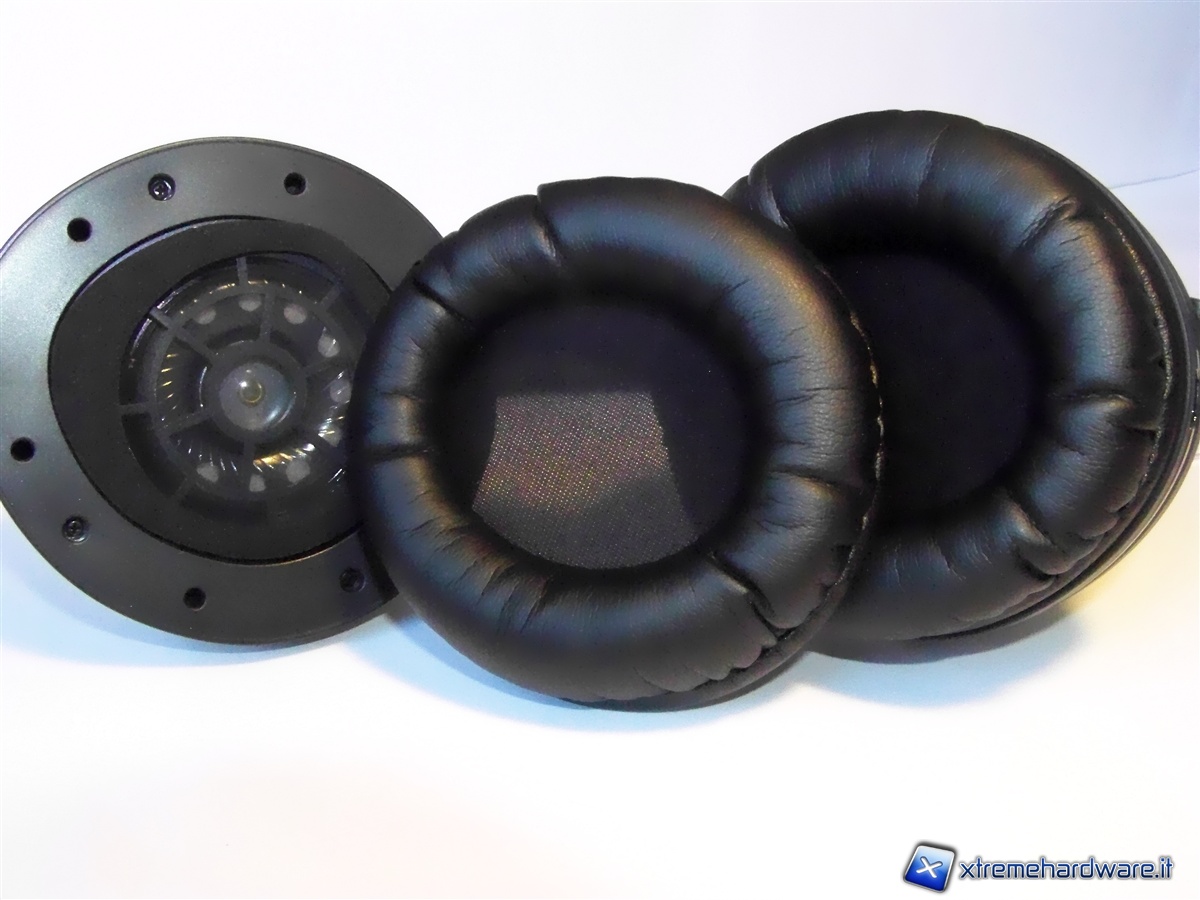 Firmly pulling the pad to your position you can release it from its home position giving you access to headset's speaker.